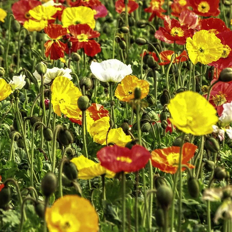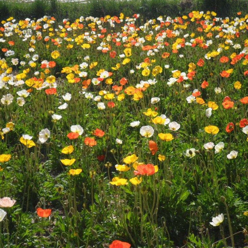 冰島虞美人在5~9月份開花,花期很長,花色鮮艷豐富,花量也很大,經(jīng)常用來建造花海景觀,也被廣泛用于庭院、園林等地的景觀布置,還是很不錯的切花材料,應用廣泛。