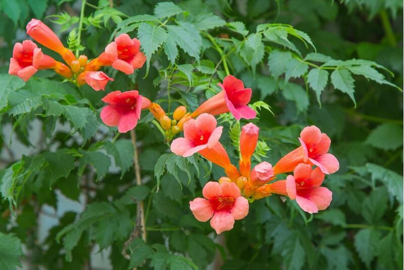 凌霄花具有園林綠化價值,植物的花朵比較獨特,花型比較大,色澤比較鮮艷,觀賞價值很高。