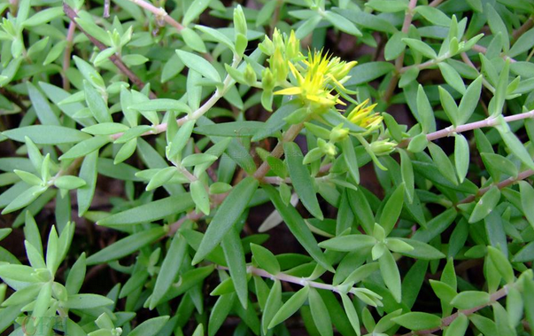 垂盆草花莖比較細,而且是匍匐在節(jié)上生根,有3片葉輪生,葉為披針形,有聚傘花序,開花比較少,顏色為黃色;佛甲草莖直立,也是3片葉輪生,葉是線形,花也是頂生的聚傘花序,顏色為黃色的。